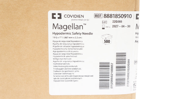 - Covidien 8881850910 Magellan Hypodermic Safety Needle 19G x 1In - Box of 500