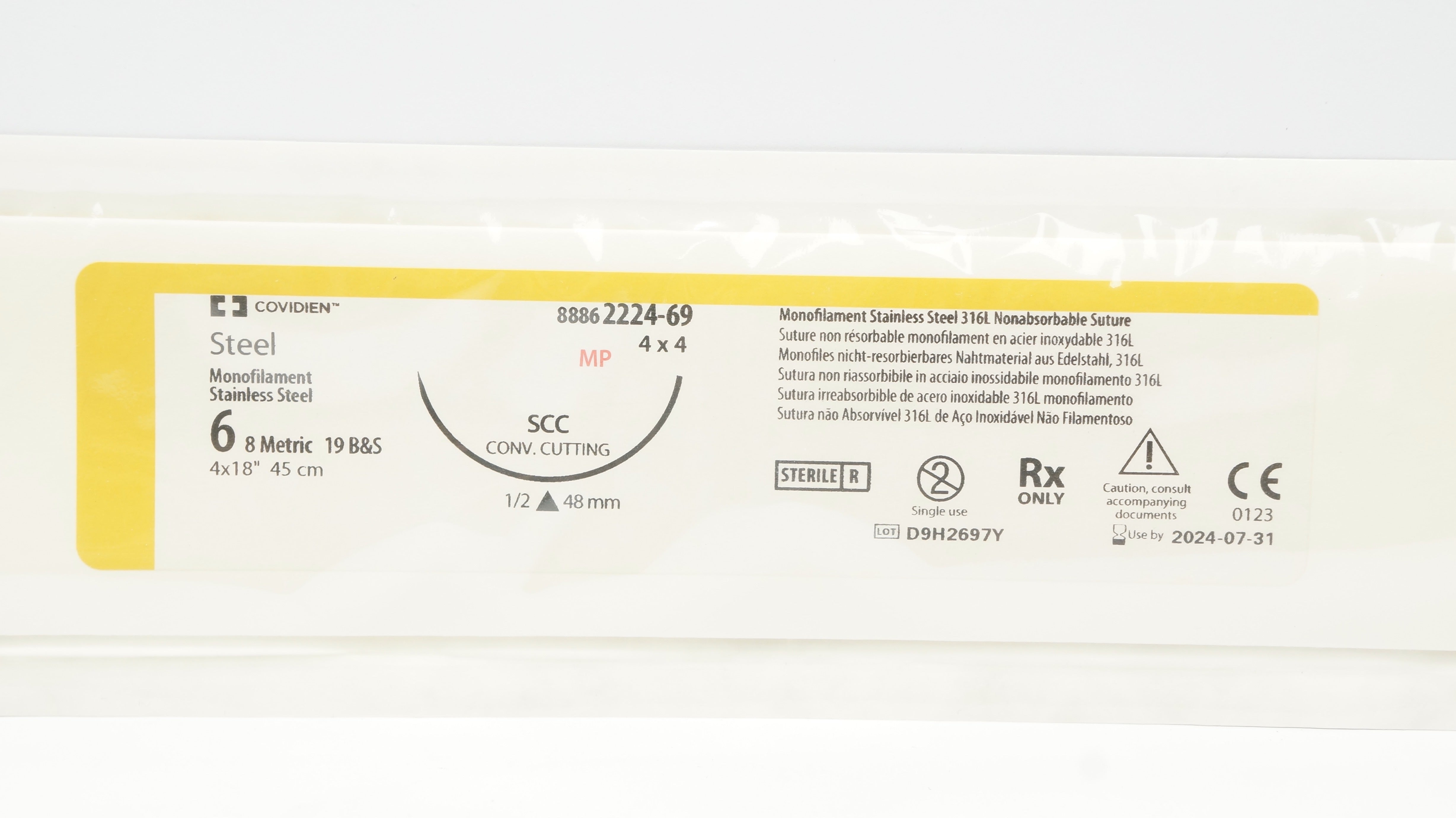 - Covidien 88862224-69 6 Steel Monofilament Stainless Steel 8 Metric SCC 4x18in(x)