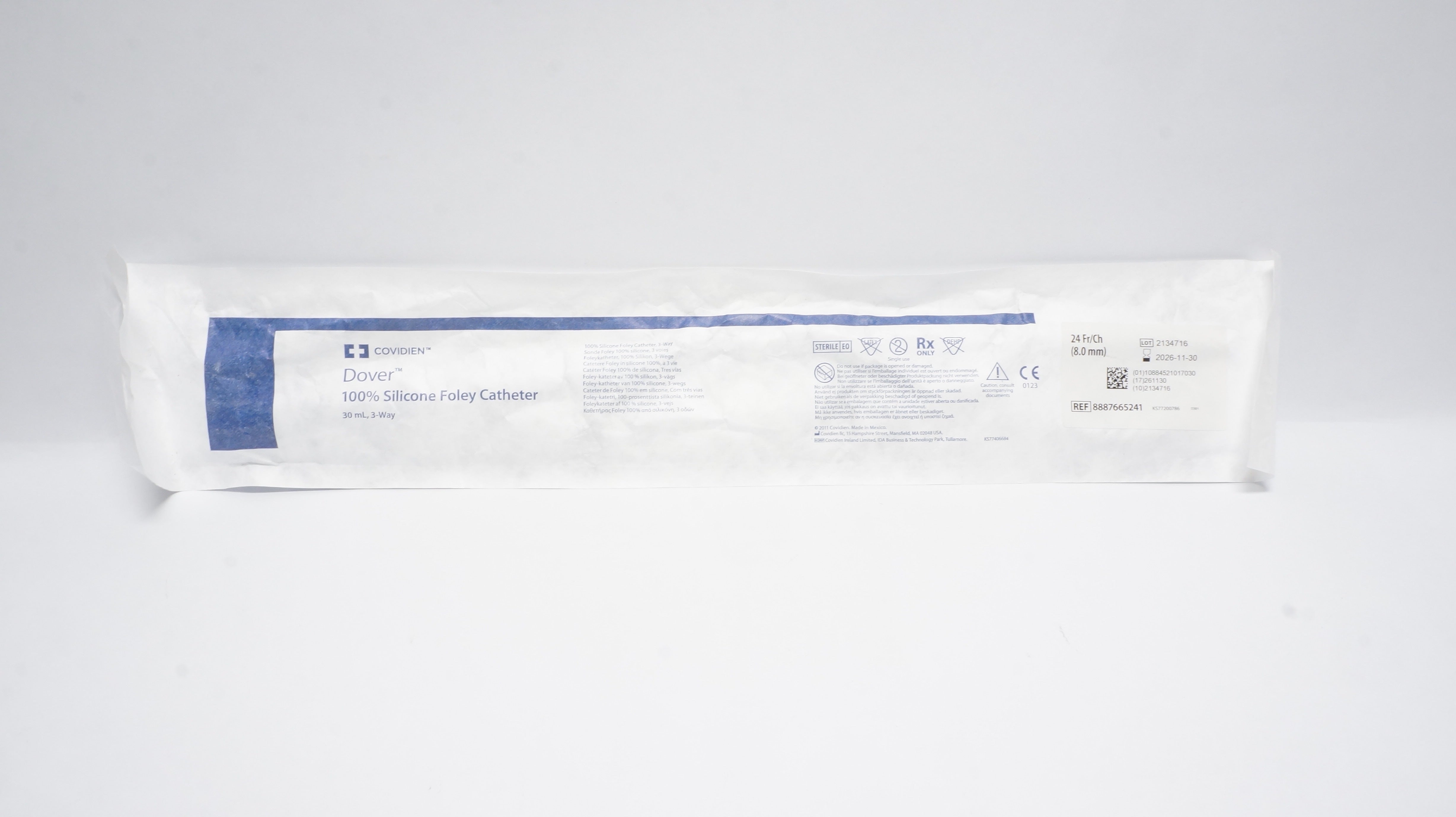 - Covidien 8887665241 Dover 100% Silicone Foley Catheter 30ml 3-Way