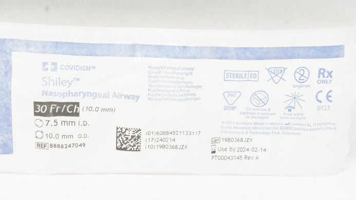 - Covidien 8888247049 Shiley Nasopharyngeal Airway 30Fr/Ch 7.5mmID x 10.0mmOD (x)