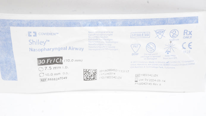 - Covidien 8888247049 Shiley Nasopharyngeal Airway 30Fr/Ch 7.5mmID x 10.0mmOD (x)