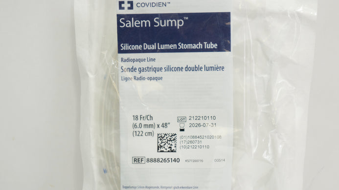 - Covidien 8888265140 Salem Sump Silicone Dual Lumen Stomach Tube 18Fr. x 48inch