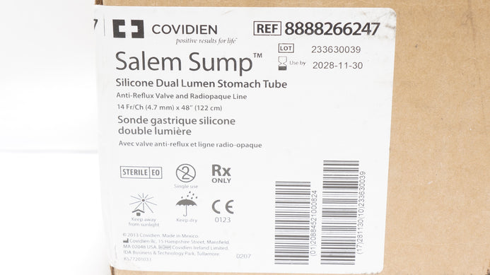 - Covidien 8888266247 Salem Sump Silicone Dual Lumen Stomach Tube - Box of 10