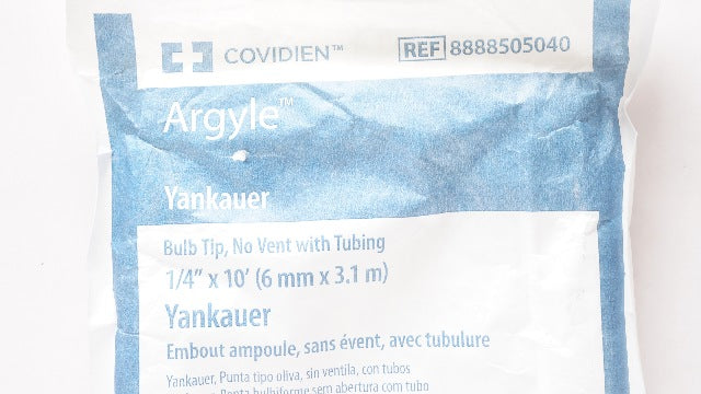 - Covidien 8888505040 Argyle Yankauer Bulb Tip No Vent with Tubing 1/4inch x 10'