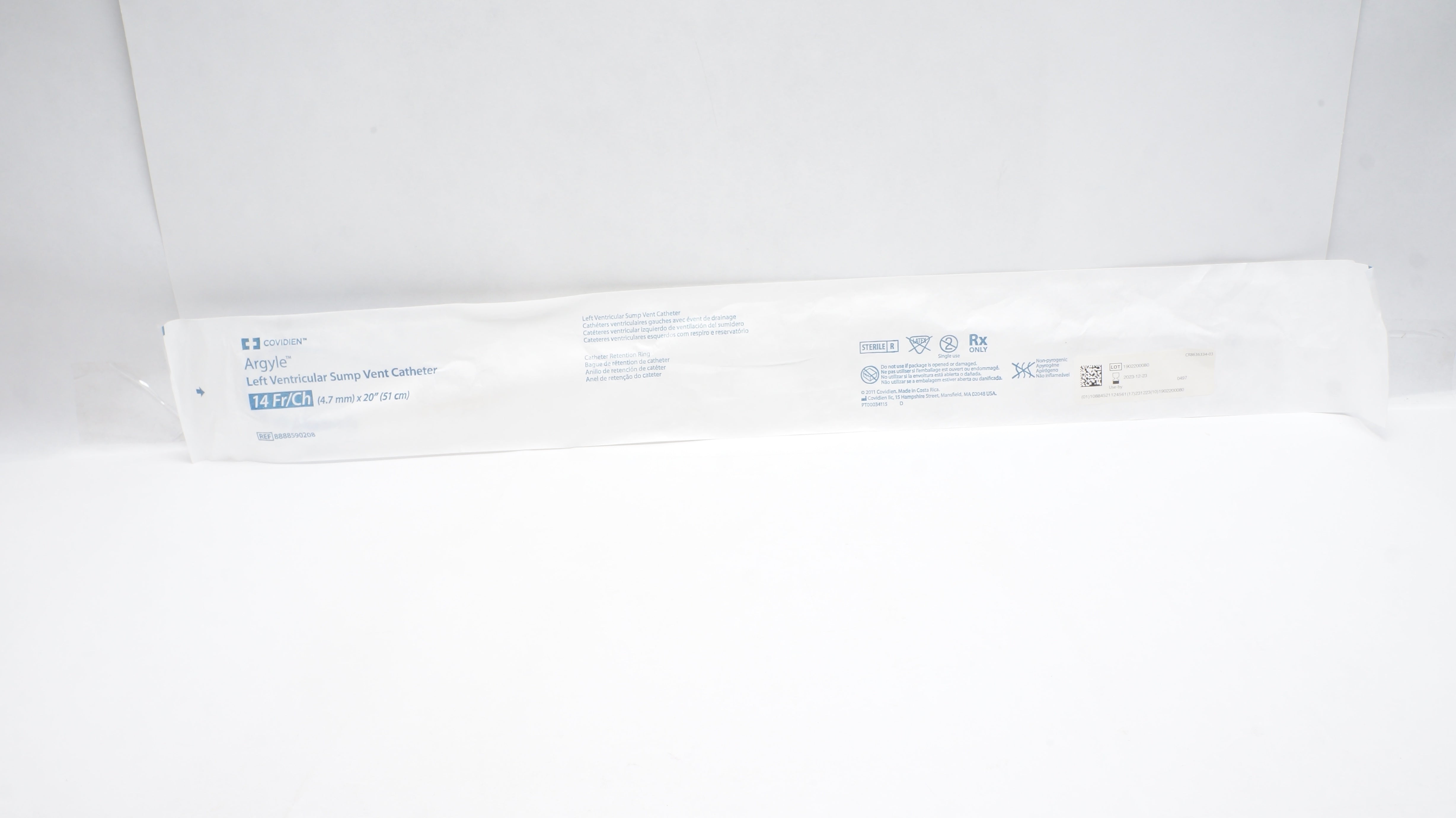 - Covidien 8888590208 Argyle Left Ventricular Sump Vent Cath. 14Fr. (x)