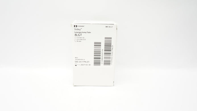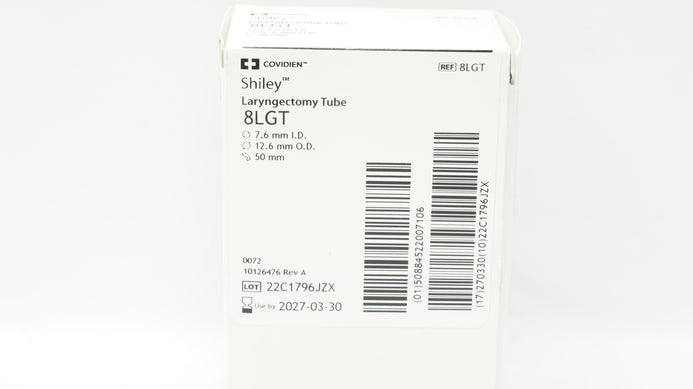 - Covidien 8LGT Shiley Laryngectomy Tube 7.6mm I.D. x 12.6mm O.D. x 50mm