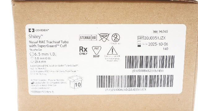 - Covidien 96365 Shiley Nasal Rae Tracheal Tube with Cuff 6.5 ID - Box of 10