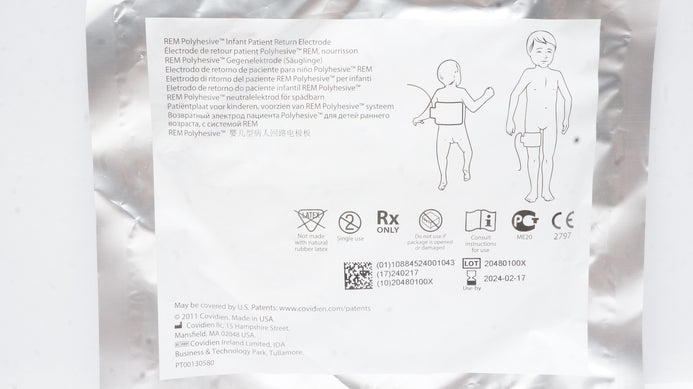 - Covidien E7510-25 Valleylab REM Polyhesive Infant Return Electrode 6-30lbs (x)