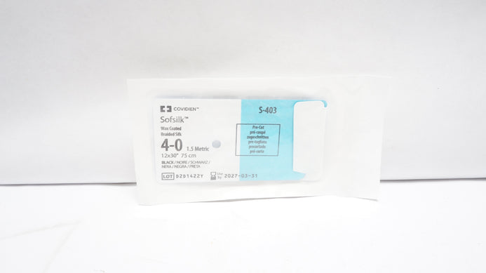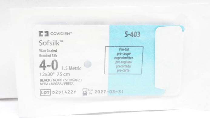 - Covidien S-403 4-0 Sofsilk Wax Coated Braided Silk, 12x30In