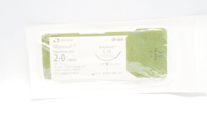 - Covidien SN-664 2-0 Monosof Monofilament Nylon C-15 Cutting 3/8 26mm
