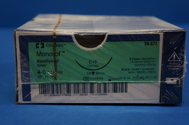 Covidien SN-672 Monosof, Monofilament Nylon 30", C-17, Size 4-0