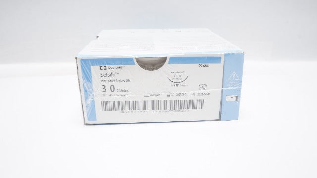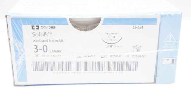 - Covidien SS-684 3-0 Sofsilk Wax Coated Stre C-14 3/8 24mm 18inch - Box of 36