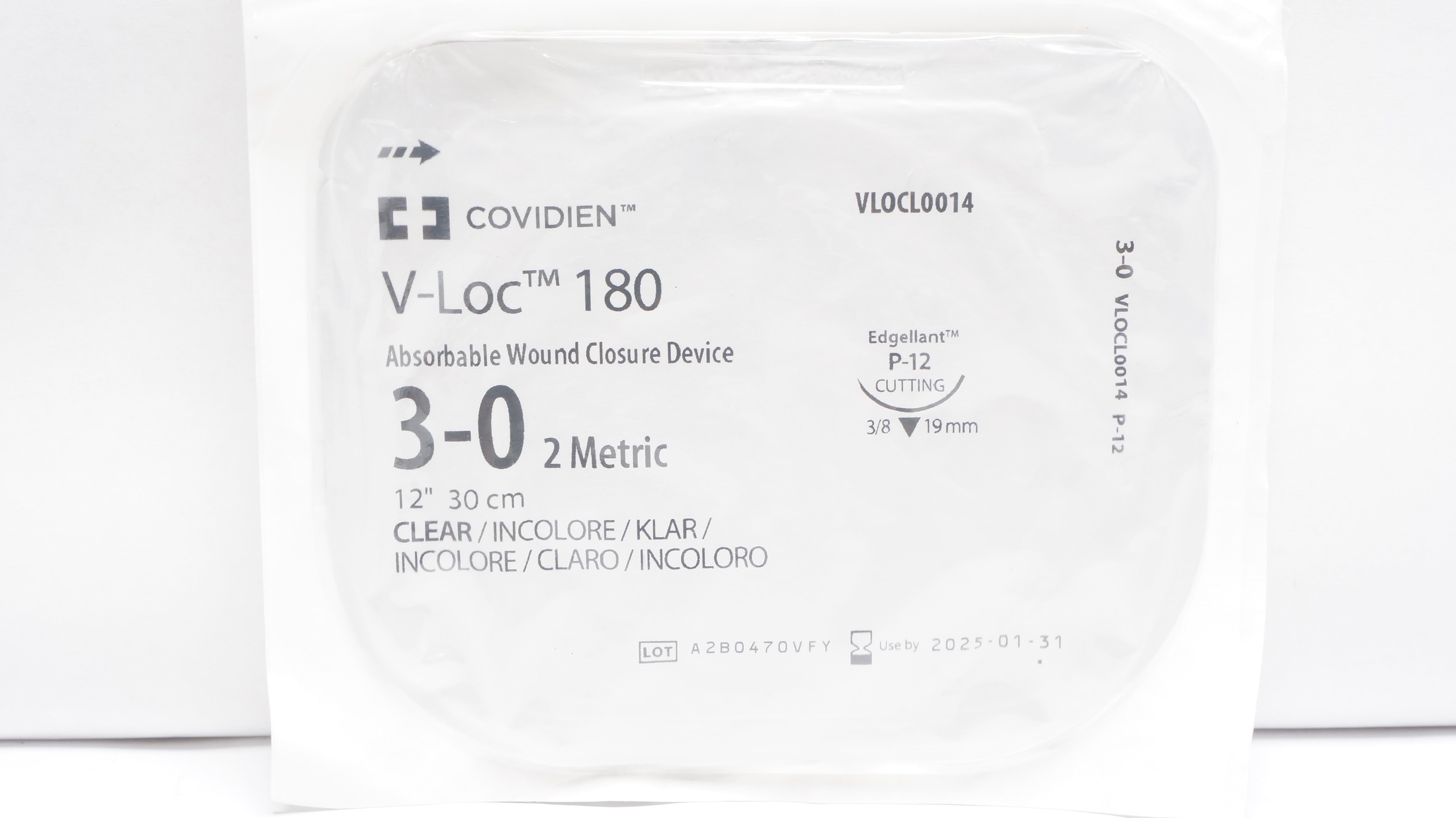 - Covidien VLOCL0014 3-0 V-Loc 180, P-12 Edgellant Cutting, 3/8 19mm, 12inch (x)