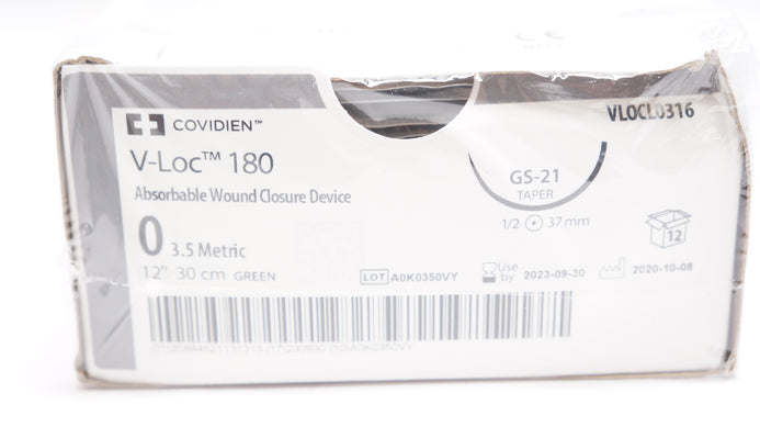 - Covidien VLOCL0316 0 V-Loc 180 Wound Closure,GS-21,1/2 37mm,12in (x) - Box of 12