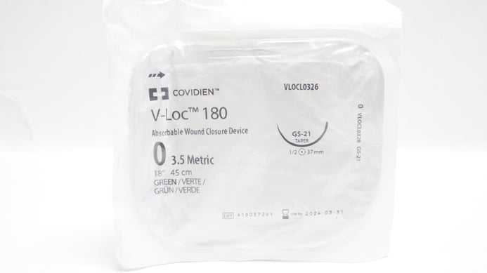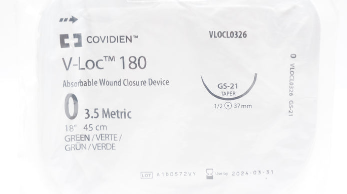 - Covidien VLOCL0326 0 V-Loc 180 Wound Closure, GS-21 Taper 1/2 37mm, 18inch (x)