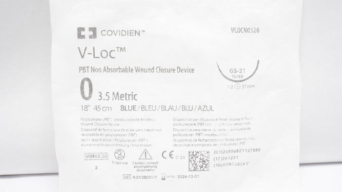 - Covidien VLOCL0326 0 V-Loc 180 Wound Closure, GS-21 Taper 1/2 37mm, 18inch (x)
