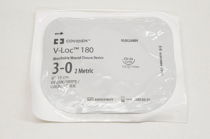 - Covidien VLOCL0804 3-0 V-Loc Absorbable Wound Closure, CV-23, 1/2 17mm, 6inch
