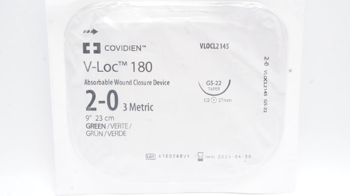 - Covidien VLOCL2145 2-0 V-Loc 180 GS-22 Taper 1/2c 27mm 9 inch (x)