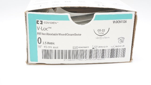 - Covidien VLOCN1126 0 V-Loc PBT GS-22 Taper 1/2cc 27mm, 18inch (x) - Box of 32