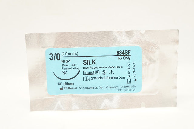 - CP Medical 684SF 3/0 NFS-1 Silk Black Braided Stre 24mm 3/8c Reverse Cutting18in