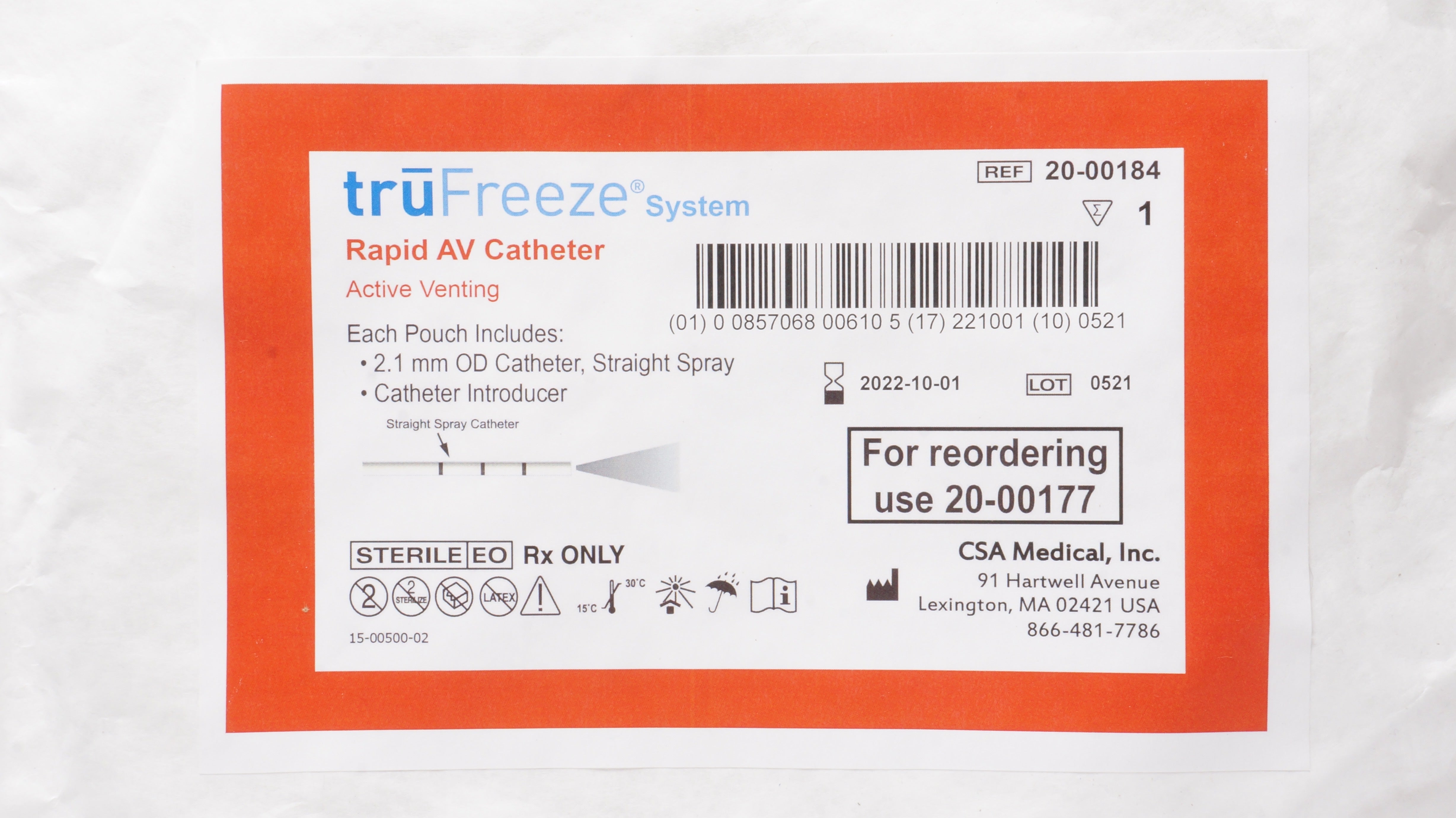 - CSA Medical 20-00184 truFreeze System Rapid AV Cath. 2.1mm (x)