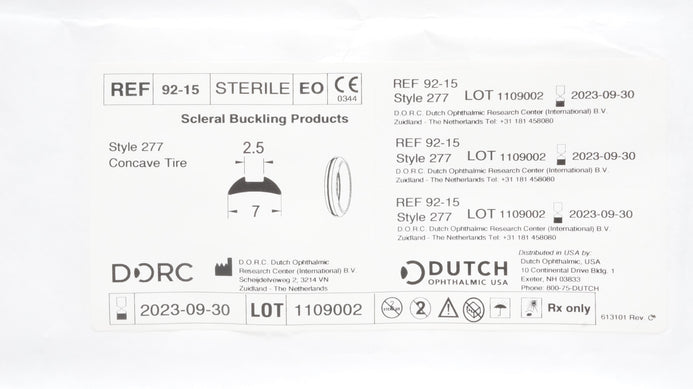 - D.O.R.C. 92-15 Scleral Buckling Products Style 277 Concave Tire 2.5, 7 (x)