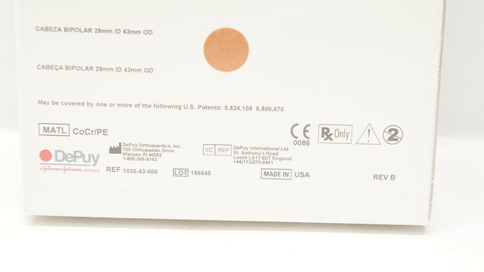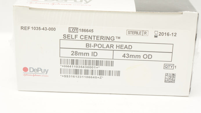 - DePuy 1035-43-000 Self-Centering Bi-Polar Head 28mm ID x 43mm OD (x)