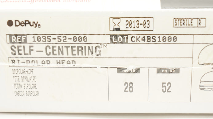 - DePuy 1035-52-000 Self-Centering Bi-Polar Head 28mm ID x 52mm OD (x)
