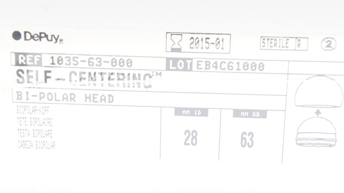 - DePuy 1035-63-000 Self-Centering Bi-Polar Head 28mm ID x 63mm OD (x)