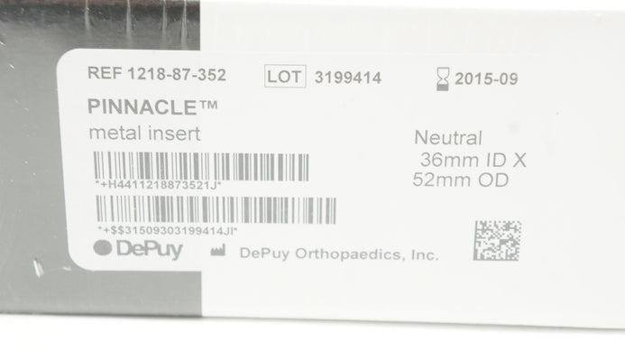 - DePuy 1218-87-352 Pinnacle Metal Insert Neutral 36mm ID x 52mm OD (x)