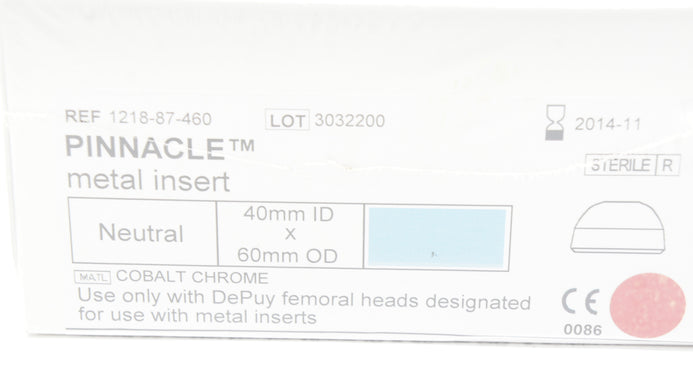 - DePuy 1218-87-460 Pinnacle Metal Insert Neutral 40mm ID x 60mm OD (x)