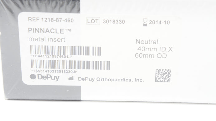 - DePuy 1218-87-460 Pinnacle Metal Insert Neutral 40mm ID x 60mm OD (x)
