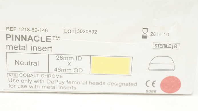 - DePuy 1218-89-146 Pinnacle Metal Insert Neutral 28mm ID x 46mm OD (x)