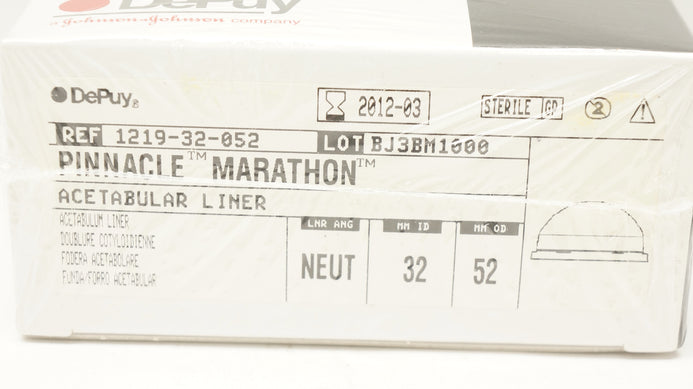 - DePuy 1219-32-052 Pinnacle Marathon Acetabular Liner Neutral 32 ID x 52mm OD (x)