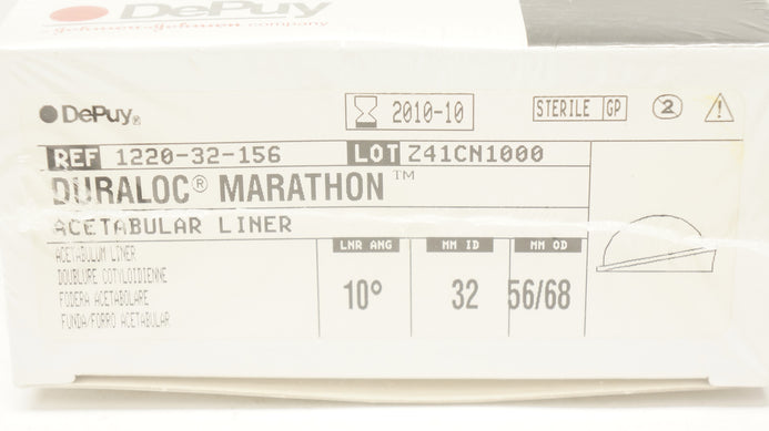 - DePuy 1220-32-156 Duraloc Marathon Acetabular Liner 10Degree 32mmID 56/68mmOD(x)