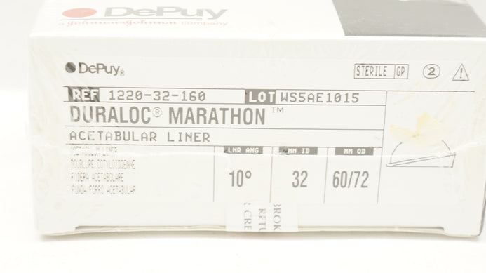 - DePuy 1220-32-160 Duraloc Marathon Acetabular Liner 10Degree 32mm ID x 60mm OD
