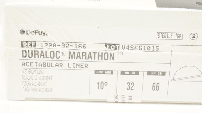 - DePuy 1220-32-166 Duraloc Marathon Acetabular Liner 10Degree 32mm ID x 66mm OD