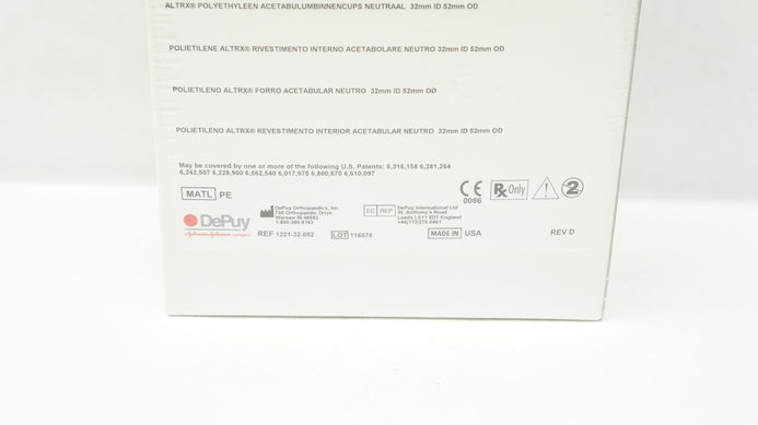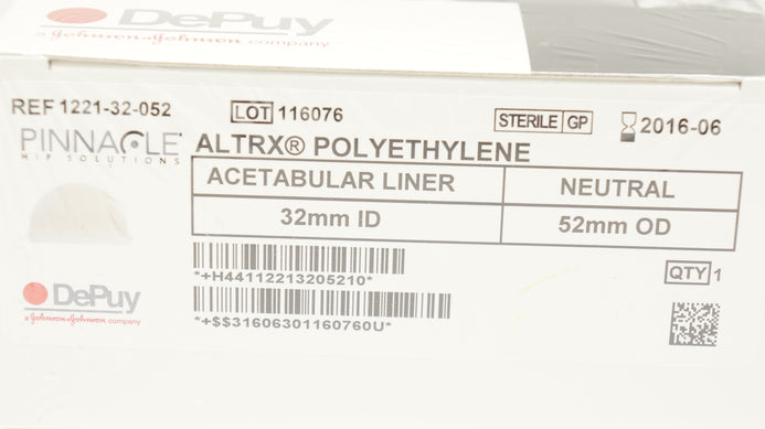 - DePuy 1221-32-052 Pinnacle ALTRX Acetabular Liner Neutral 32mm ID x 52mm OD (x)