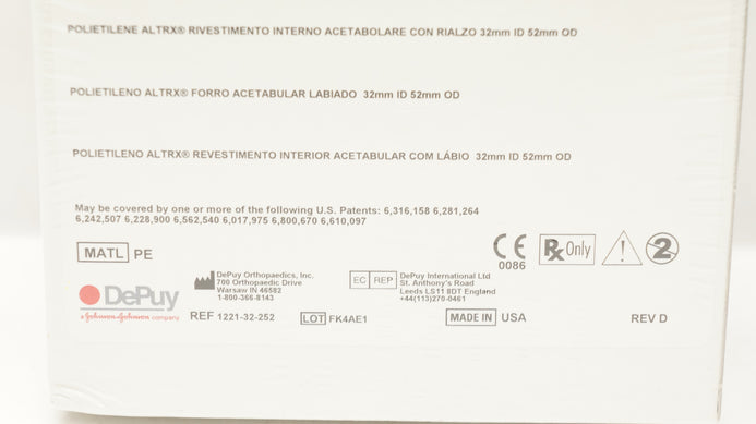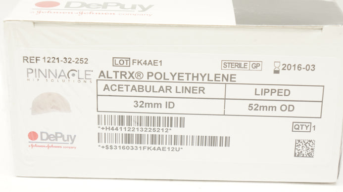 - DePuy 1221-32-252 Pinnacle ALTRX Acetabular Liber Lipped 32mm ID x 52mm OD (x)