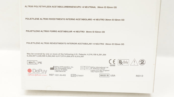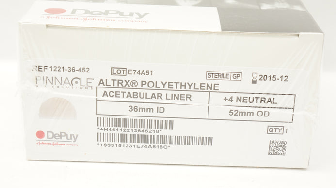 - DePuy 1221-36-452 Pinnacle ALTRX Acetabular Liner +4 Neutral 36mmID x 52mmOD (x)
