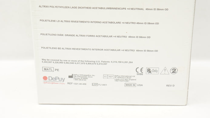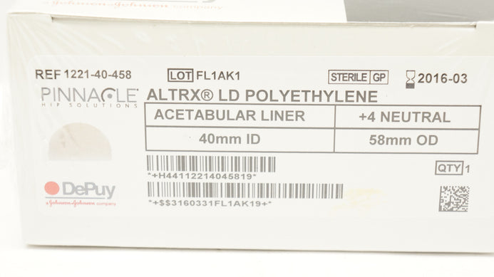 - DePuy 1221-40-458 Pinnacle ALTRX Acetabular Liner +4 Neutral 40mmID x 58mmOD(x)