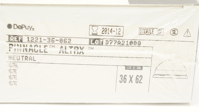 - DePuy 1221-40-460 Pinnacle ALTRX +4 Neutral 40mm ID x 60mm OD (x)