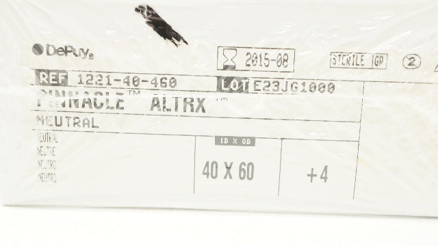 - DePuy 1221-40-460 Pinnacle ALTRX +4 Neutral 40mm ID x 60mm OD (x)