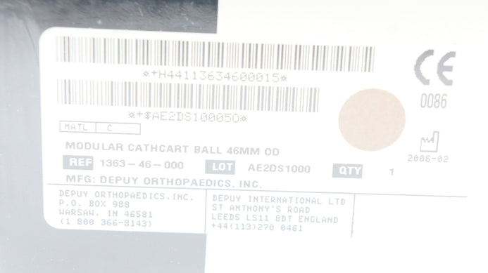 - DePuy 1363-46-000 Modular Cathcart Ball 46mm OD