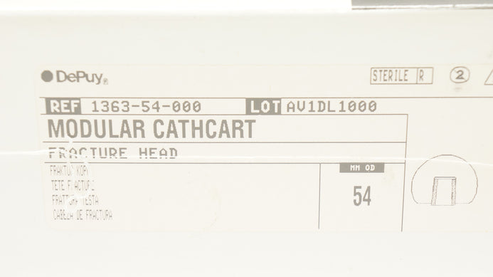 DePuy 1365-69-000 Articul/eze M-Spec Femoral Head 48mm +5 Offset 12/14 Taper (x) DePuy 1363-54-000 Modular Cathcart Fracture Head 54 mm OD DePuy 1363-54-000 Modular Cathcart Fracture Head 54 mm OD