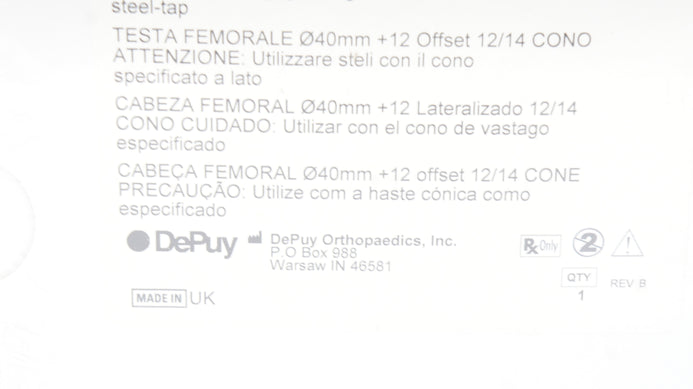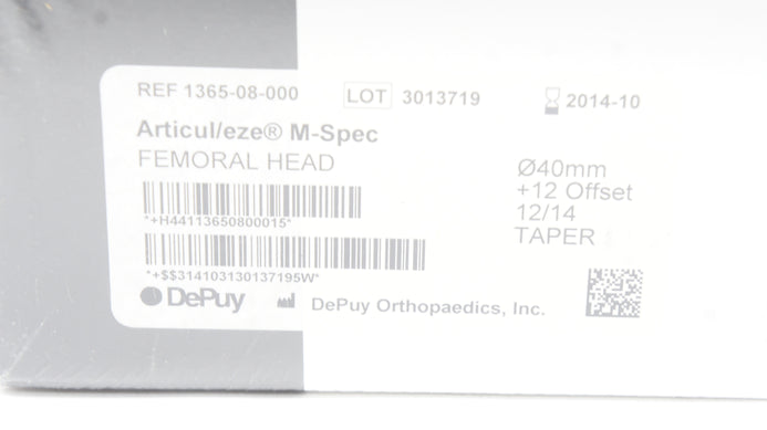- DePuy 1365-08-000 Articul/eze M/Spec Femoral Head 40mm +12Offset 12/14Taper (x)