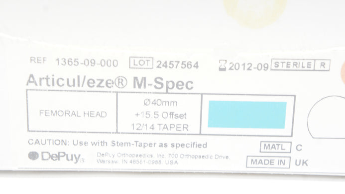 - DePuy 1365-09-000 Articul/eze M-Spec Femoral Head 40mm +15.5, 12/14 Taper(x)
