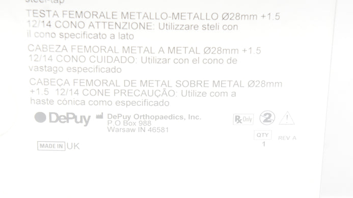 - DePuy 1365-11-500 Articul/EZE Metal Femoral Head 28mm +1.5 12/14 Taper (x)