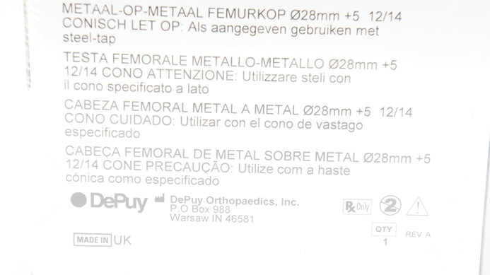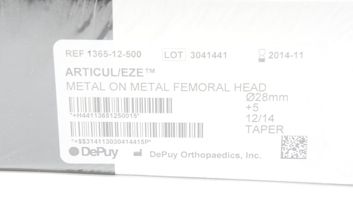 - DePuy 1365-12-500 Articul/EZE Metal on Metal Femoral Head 28mm +5 12/14Taper (x)