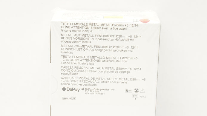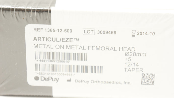- DePuy 1365-12-500 Articul/EZE Metal on Metal Femoral Head 28mm +5 12/14Taper (x)